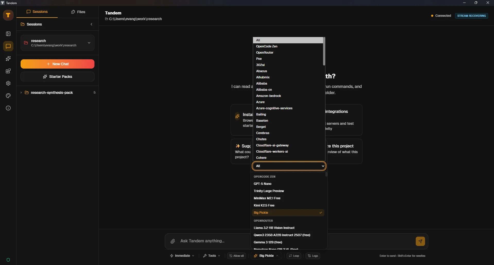 Locate the model/provider dropdown in the UI