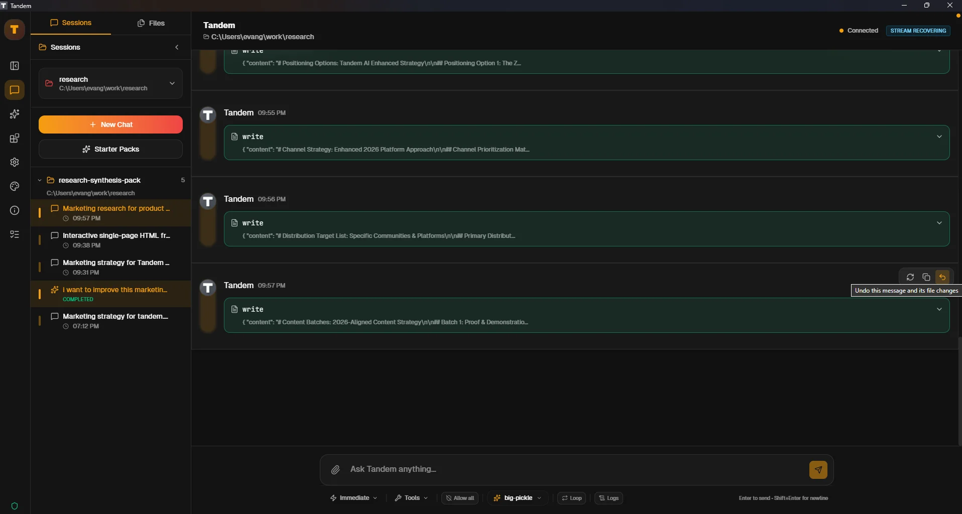 Before executing, you should review exactly what will change. Tandem provides undo, retry, and copy controls to help you manage changes safely.